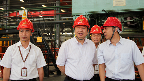 陈景河董事长等实地考察了板带厂、铜管厂生产线,并在随后的座谈会上,详细了解了企业当前生产经营情况。