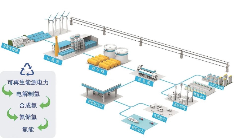 绿色“氨-氢”能源“零碳”循环路线示意图