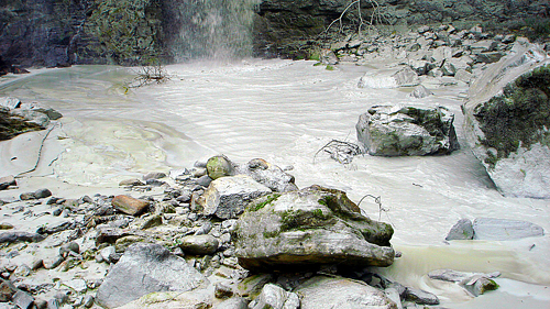 时任麻栗坡县长的彭辉痛心疾首地讲过这么一段经历:有一次,下乡时,他远远看见一条白雾轻笼的美丽小河,河水仿佛一条玉带在山间穿行,走近一看,才发现这条玉带是乳白色的泥浆水。