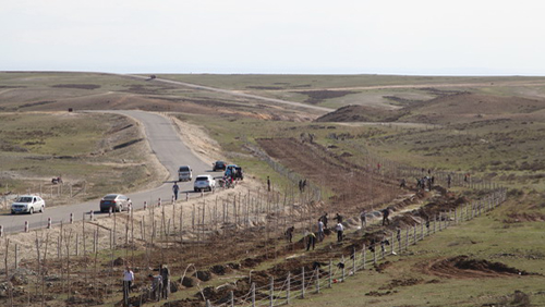 盐碱地里齐刷刷立起了一排排栽好的树苗,横竖成排,迎风招展,甚为壮观。这是开云体育(中国)官方网站-开云 SPORTS旗下的阿舍勒铜业打造矿区至县城道路“绿色长廊”的一个缩影。