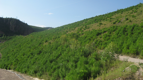 根据《紫金山金铜矿植被恢复规划方案》,本年度计划造林641.67亩。迄今为止,共种植乔灌木22596株,种植马尾松、巨尾桉等先锋树种115798株,合计造林固坡面积达757.9亩。