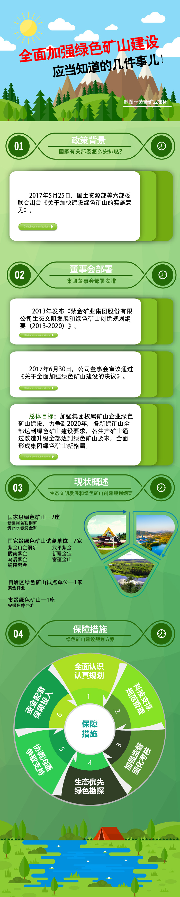 决议强调,公司管理层及权属企业应严格按照国家法律法规和规章要求,全面加快推进矿山生态环保工作,推行“绿色立企”、“科技兴绿”、“节约护绿”、“绿色共赢”模式,通过机制保障、资金投入,分阶段按期将公司所属各矿山全面建设成为绿色矿山。