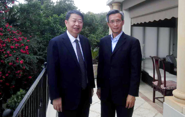 林松添大使曾长期在外交部非洲司和非洲国家工作,对非洲国家政策和投资风险非常熟悉,他说,南非基础条件好,资源丰富,近年来在南非平安建设和劳工问题上取得了一定成绩,希望中国矿业企业一定要有互利共赢的思想,带动当地和员工福利水平提高,帮助贫困人口脱贫。林大使还就如何做好非洲国家投资和风险控制,与陈景河董事长进行了深入交流。