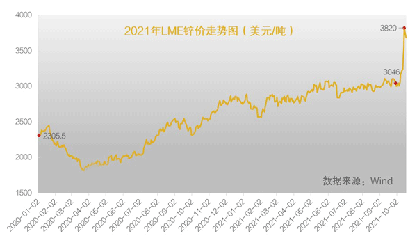2021年前三季度,受全球库存走低及经济复苏驱动,锌价进入快速上涨通道,LME平均锌价较去年同期增长35%。今年最高达到3820美元/吨。