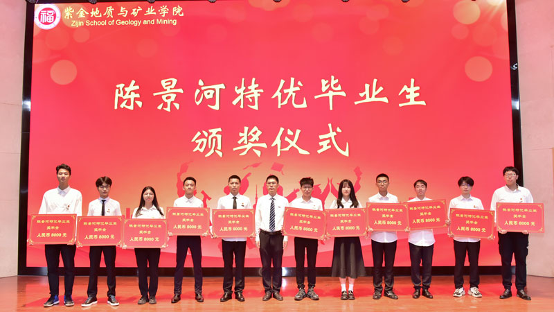 紫金地质与矿业学院2022届毕业生总共165人,升学率达41.2%为68人,其中推荐免试研究生14人。此次“陈景河特优毕业生”奖金由福建闽西陈景河教育基金会赞助。