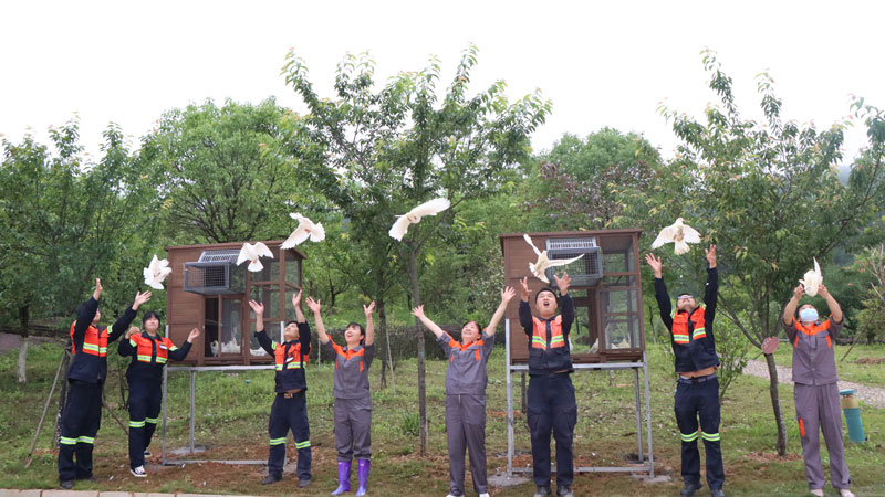 紫金山铜金矿采矿厂员工在矿山植物园搭建饲养笼,放飞数十只鸽子,倡导人们践行保护生物多样性理念。