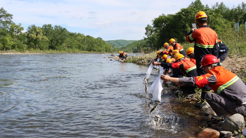 珲春曙光金铜矿开展增殖放流,在四个投放点将2000余尾柳根鱼、锦鲤放入流经矿区的香房河及矿区周边的清沟子河。