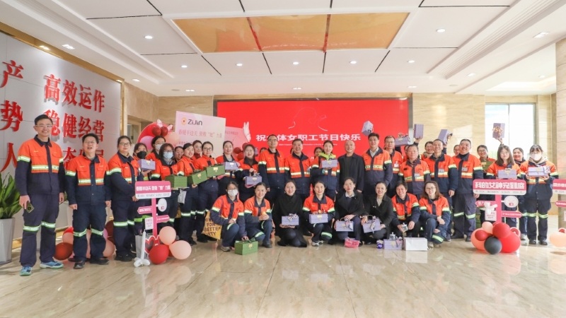乌后紫金组织开展女职工免费体检和“踏石过河”等系列趣味活动,并向公司女职工献上鲜花、巧克力及节日祝福。