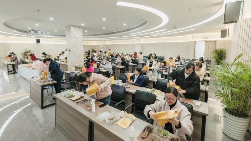 技术公司联合新能源科技公司的女职工们在景观设计师的指导下,制作出一瓶瓶妙趣横生、充满盎然生机的微景观生态瓶。随后,女职工们还在春日下午茶派对上品尝甜点美食。