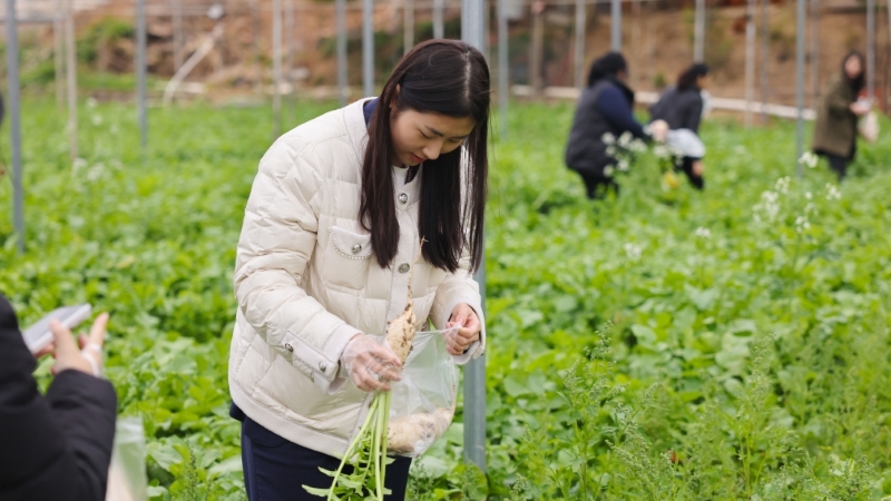 公司工会组织总部女员工前往上杭萝卜干种植加工基地,体验非物质文化遗产项目——萝卜干制作技艺。
