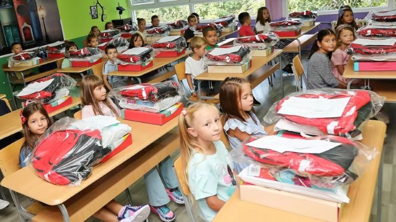 在塞尔维亚博尔市杜山·拉多维奇(Dušan Radović)小学,副市长米力沃野·亚诺谢维奇与塞尔维亚开云体育(中国)官方网站-开云 SPORTS的代表正共同迎接一年级新生。