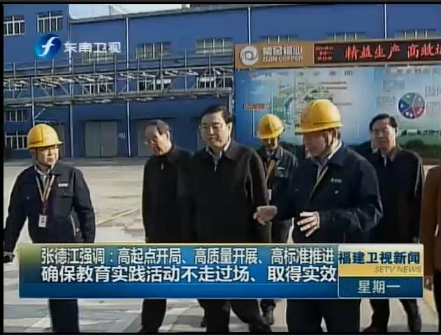 上杭县是张德江委员长开展党的群众路线教育实践活动的联系点。在上杭县蛟洋镇的循环经济园区,张德江委员长深入紫金铜业20万吨铜冶炼厂和瓮福紫金磷化工厂,了解园区企业通过产业链上下游对接,实现资源循环再利用的做法。