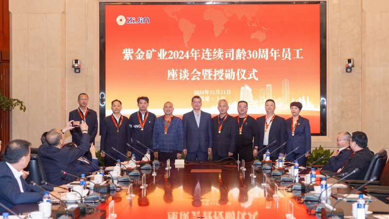 邹来昌总裁转达了陈景河董事长和公司领导班子的亲切问候和感谢。他说,人是历史的创造者,在紫金发展的壮阔历程中,一大批创业者、建设者们胸怀强烈的事业心和责任感,走出舒适区奔赴全球各地,展现了非凡的坚持和付出,用实干、巧干书写了“紫金佳话”“紫金速度”,为公司的发展作出了贡献。尽管30年在时间的长河中只是一瞬,也尽管我们都在平凡的岗位上,但坚持专注、担当使命、不怕困难、艰苦奋斗却能够铸就精神的丰碑,在座每个人都是一本紫金文化的“活字典”,希望大家继续发扬“传帮带”作用,传承和弘扬紫金精神,激励新一代紫金人为集团公司的发展贡献更大的力量。