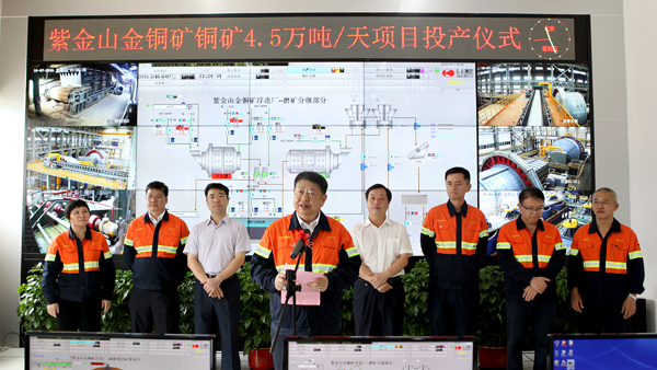 陈景河在仪式上发表致辞。他说,紫金山铜矿技改项目的建成投产将极大地提升矿山产能,促进矿山可持续发展,紫金山铜矿将成为中国新的重要的铜矿产地之一,将为地方经济发展作出新的贡献。项目的建设采取EPC总承包模式,仅用16个月就圆满完成了建设任务,设计和建设有诸多创新,考验和锻炼了紫金的设计和建设队伍,为集团公司今后的建设项目树立了新的模式和典范。