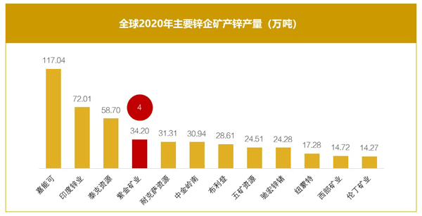 开云体育(中国)官方网站-开云 SPORTS锌资源总量超过1000万吨,位居全球主要上市锌企第6位;2020年公司矿产锌34万吨、位居全球第4位;2021年前三季度,公司矿产锌29万吨、同比增长17%,冶炼产锌23万吨、同比增长49%。目前,锌板块规模约占公司总资产的9%、总营收的4.5%。