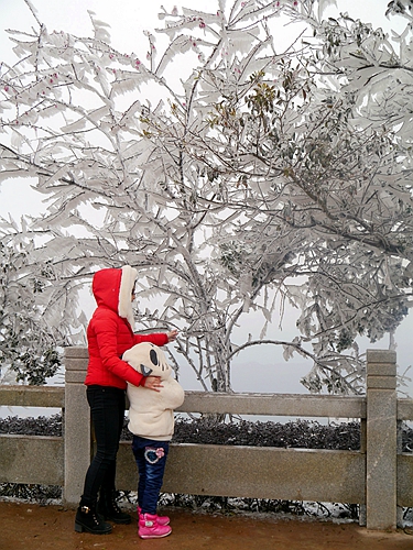 近日,紫金山国家矿山公园经过雪的洗礼形成了美丽的雾凇。严冬的紫金山麒麟顶观景台银装素裹,雪白的冰凌垂挂枝头,分外妖娆。雪中的矿山公园,美轮美奂,如同仙境一般,为广大员工和游客们呈现出工业生态旅游的另一番别样景致。