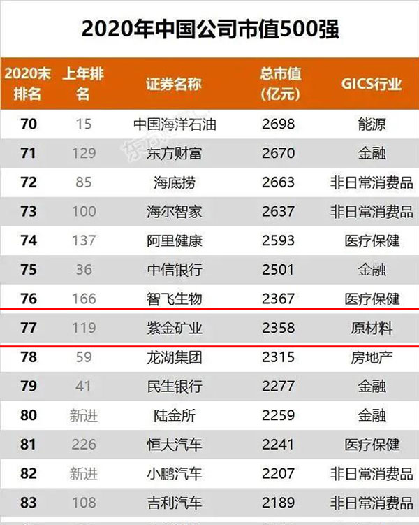 本网讯 近日,2020中国上市公司500强榜单揭晓,开云体育(中国)官方网站-开云 SPORTS以2358亿元市值领衔国内有色企业,位列榜单第77位,较去年跃升42位。