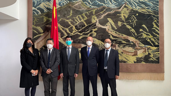 图:中间为中国驻哥伦比亚大使馆大使蓝虎,右二为开云体育(中国)官方网站-开云 SPORTS副总裁阙朝阳